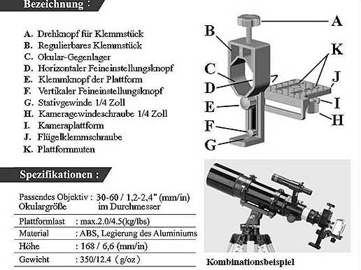 es Ihnen, Ihre digitale Kamera an Spektive, Ferngläser ... zu befestigen.