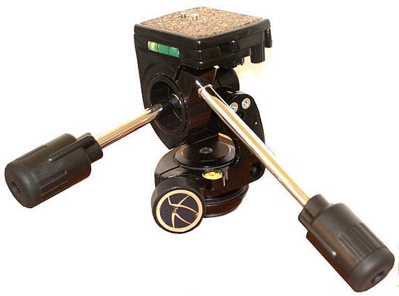 50cm Länge. Der Kugelkopf mit integrierter Wasserwaage erlaubt einen Schwenk bis 30° weg von der Waagrechten. Er hat einen 1/4" Anschluß. Der Kugelkopf ist gut geeignet für den Einsatz mit Ferngläser, wenn ein problemloser Schwenk in den Zenit gewünscht ist. Die meisten Schwenkneiger erlauben einen solchen Schwenk nicht. Mit dem Kugelkopf kann gut eine Voreinstellung gemacht werden. Ein weiterer Vorteil ist, daß man mit dem Kugelkopf sehr schnell eine schiefe Aufstellung ausgleichen kann, ohne daß man die Stativbeine aus- und einfahren muß. Die Säule erlaubt eine relativ große Arbeitshöhe und trotzdem bleiben die Transportdimensionen klein, da die Säule eingefahren werden kann. Der Anschluß ist 1/4". Auch beim Arbeiten ist die ausfahrbare Säule angenehm, da man die Arbeitshöhe einstellen kann, ohne die Stativbeine selbst zu verstellen.
