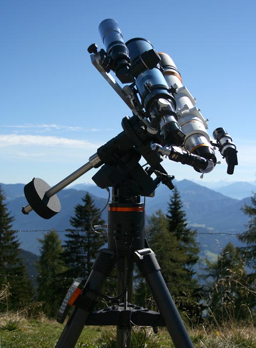 auf der CGE Montierung von Celestron und den kleinen Scopos ED 66 mitgebracht.