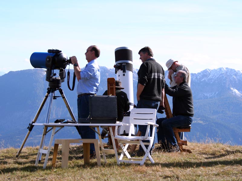 Es sind mittlerweile ca. 20 Hobbyastronomen am Berg - eine richtig familiäre