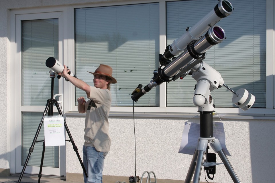 Andi bereitet gerade die Geräte für die Sonnenbeobachtung vor - obwohl auf der