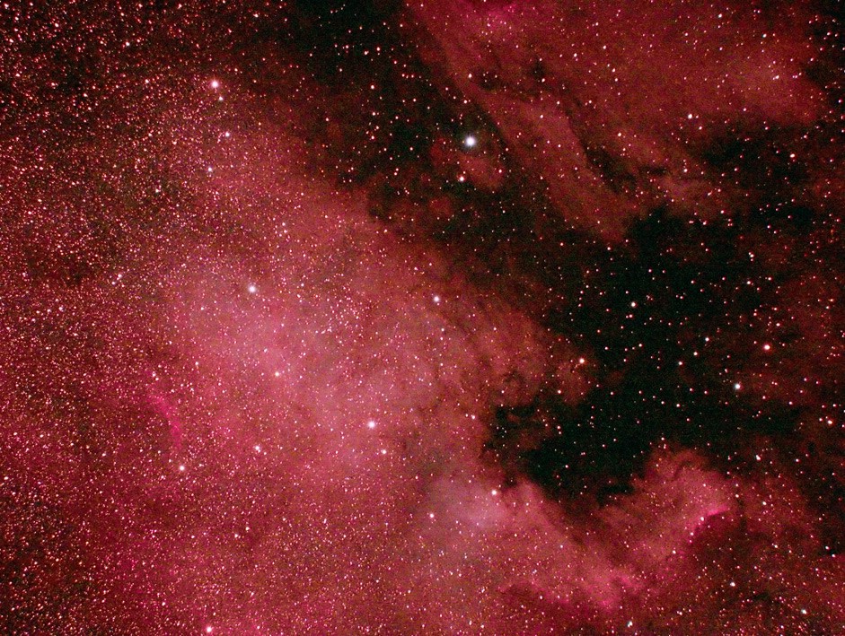 bekanntesten H-2 Regionen der Sommermilchstrasse. Die Herausforderung dieser Aufnahme war, unter Bedingungen, wie sie am Stadtrand von München herrschen, einen guten Kontrast zu gewinnen. Um den Kontrast der Aufnahme zu steigern, wurde ein UHC Filter verwendet. Die Farbverfälschung wurde dann nachträglich wieder korrigiert. Die Nachbearbeitung der Aufnahme erfolgte mit Photoshop und mit Neat Image. |