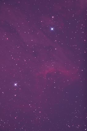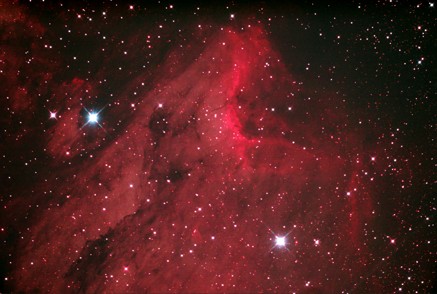 wo Nordamerika und Pelikan gemeinsam drauf sind. Der Pelikan Nebel ist eine klassische H-2 Region. Besonders schön sind die feinen Strukturen in der Nebelmasse, wie der "Rüssel" der sich in der oberen Mitte des Bildes befindet.