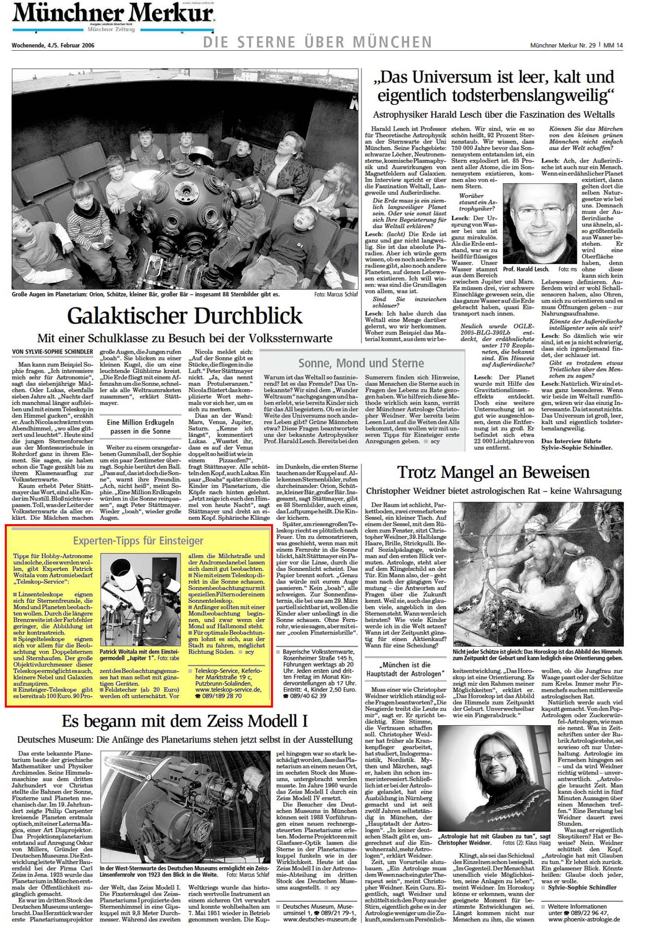 Am 02.02.2006 ist im Münchner Merkur ein schöner Artikel erschienen, wo auch extra auf Teleskop-Service verwiesen wird
